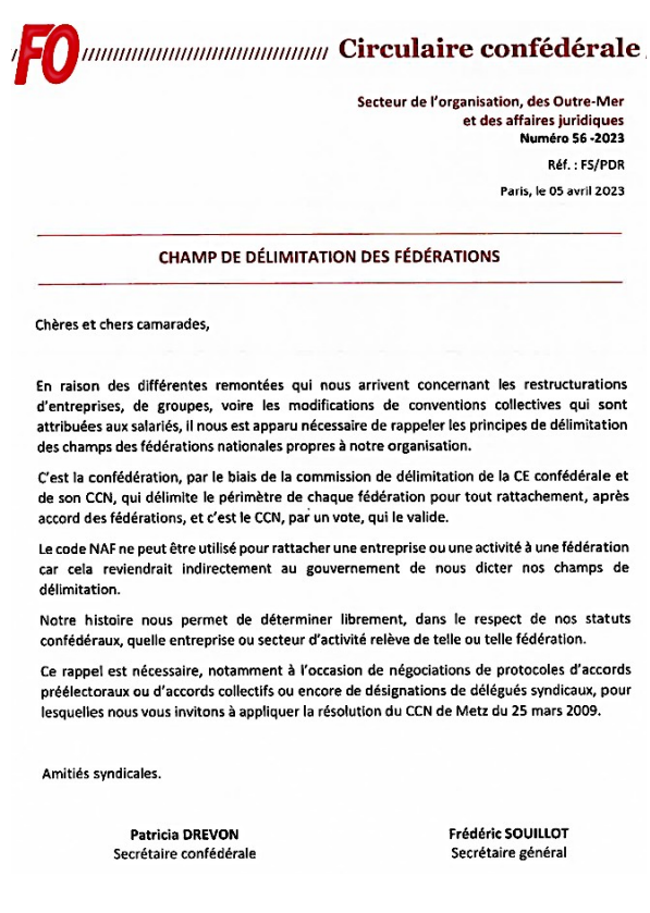 Un courrier confédéral du 5 avril 2023 prétend donner une marche à suivre pour ce qui concerne les champs de délimitation. Il est précisé, c’est tout le problème, que cela doit se faire « après accord des fédérations ».